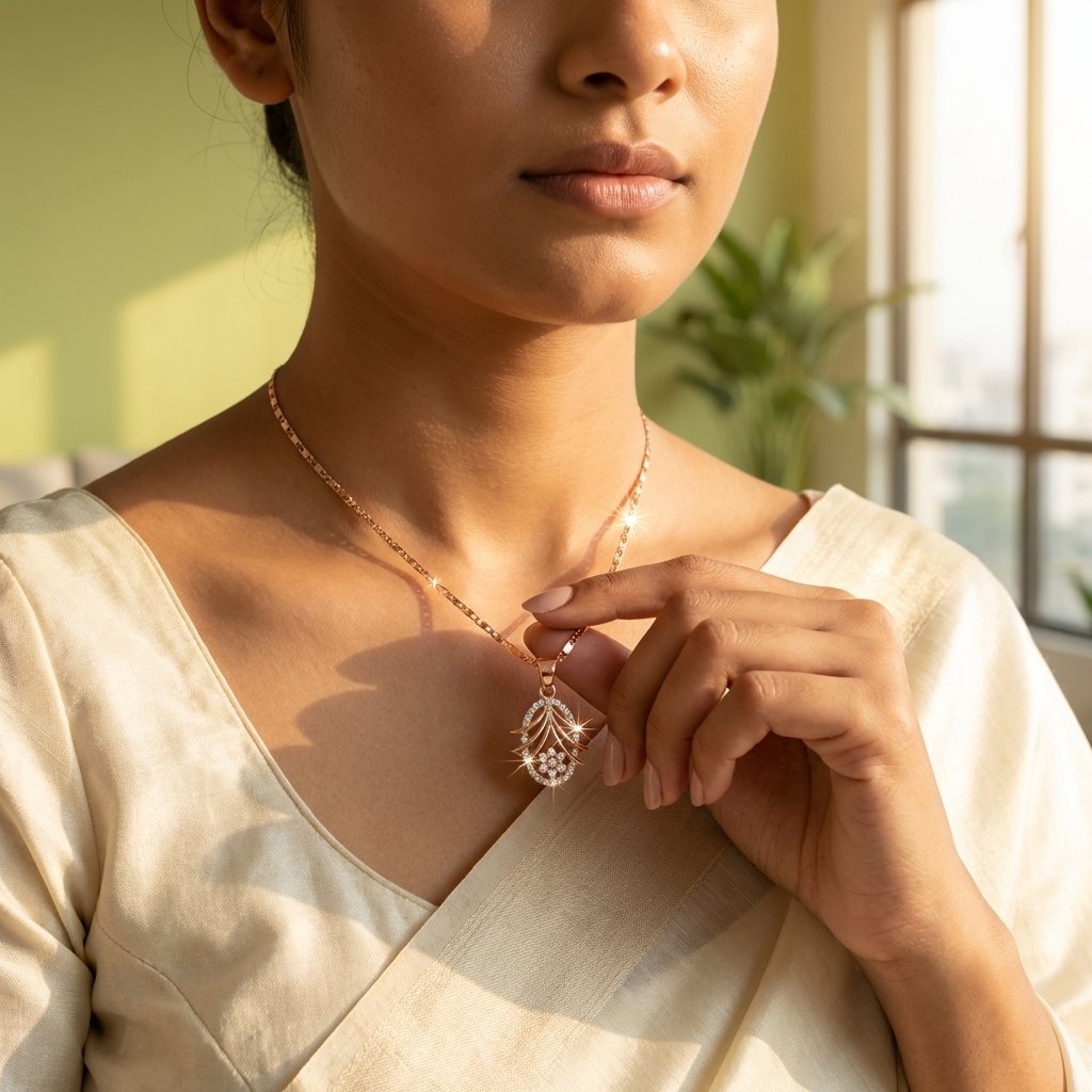 Rose Gold Teardrop Filigree Necklace Original price was: ₹1,299.00.Current price is: ₹799.00.